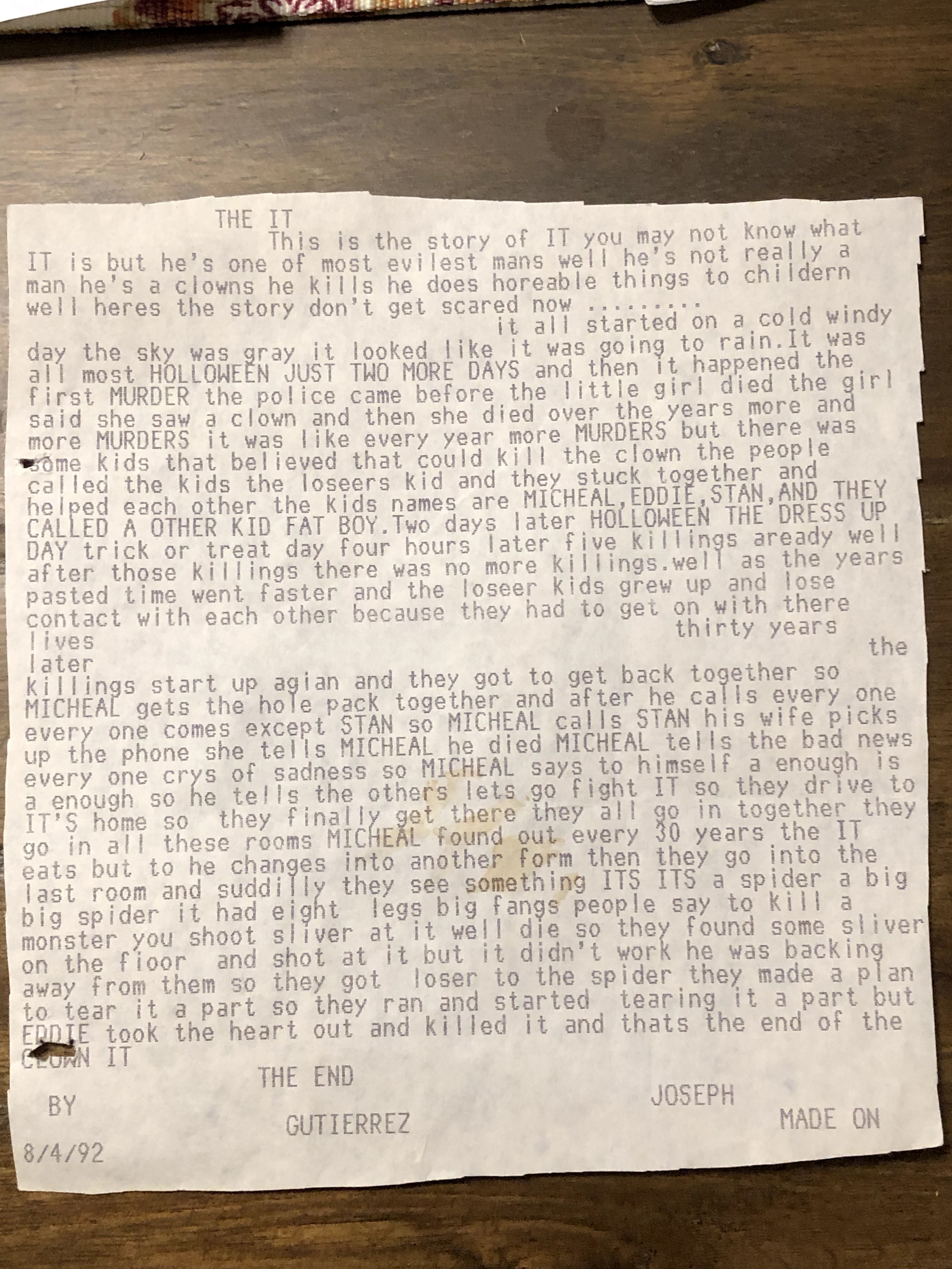 The point of this is not some much to speak about the film “IT” but really to display my love for writing at a young age, I believe I have been writing a lot younger, but unfortunately those writings where thrown away or destroyed, because I loved making up stories and I do remember wanting to one day write children’s books. One of the other’s significant memories is the love for small towns, deep in rural areas, which I still have a love for to this day, like in the Town of Derry.