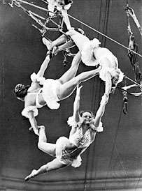 In the 20th century the Wallendas, a family of high-wire artist originally from Germany who debuted with Ringling Bros. and Barnum & Bailey in 1928 helped set the standards of the show in the acts of skill. The Wallenda family was renowned for balancing three-high on bicycles on the high wire and later for their seven-person pyramid. Other inspiring performers included Lillian Leitzel, born in Bohemia of German circus family, who could pivot 100 times on her shoulder socket, spinning from a rope like a pinwheel in a maneuver called the “plange”. (A stunt that led to her death at the peak of her career in 1931, when her apparatus broke).