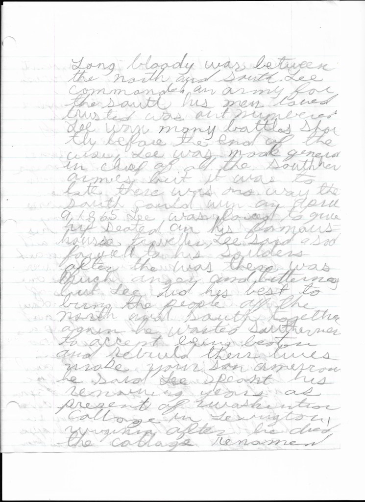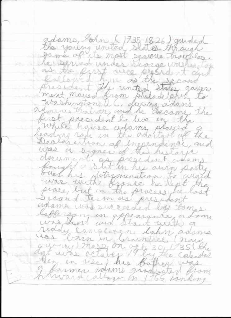 This story or autobiography of John Adams, Abe Lincoln and Lee could have been a report I did for school, but it’s ungraded. I do remember I would choose topics of interest and just write about them because there was an interest and if there something that I just need to write I wrote.