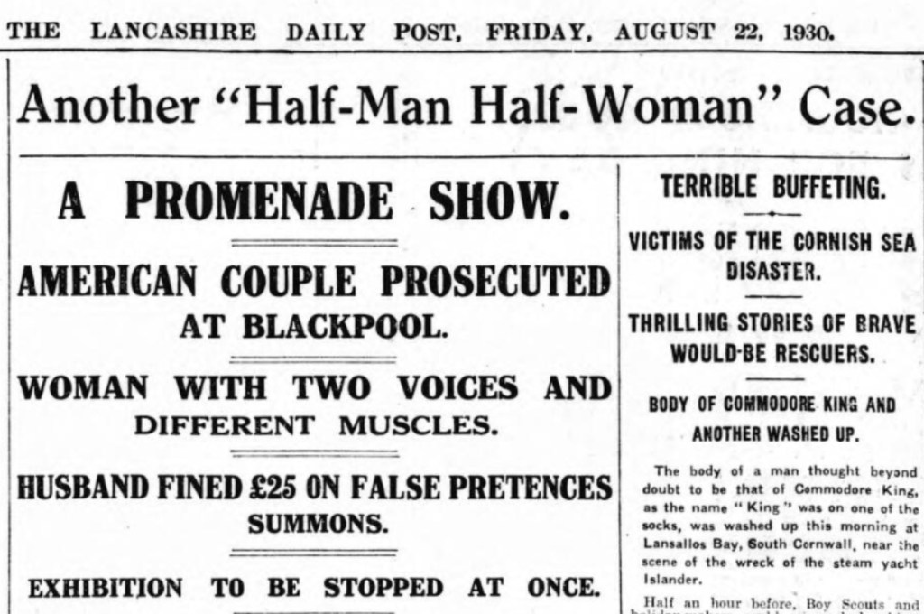 Per the courts description, she was described as a man on the right and a women on the left, with her right arm longer then her left. Her eyebrows were different. She displayed a bare right leg with a sandal, and a black stocking left leg with a women’s shoe. Her hair was brushed from the right side to the left, giving the impression of short hair on the right side. To avoid a jury trial, Joseph and Waas plead guilty. Waas apologized to the court, giving up the show and leaving the country. Waas who served as Joseph’s manager was fined 25 pounds, whilst Josephine was acquitted.