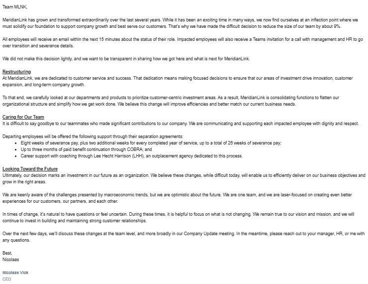 Having had almost three years of stable employment as the last time I was out of work was in late 2019. A real sticking point for me was I was not even allowed to make it to three years of working at Meridianlink before being laid off, although I was not the only one, as about 9% of the staff was cut.